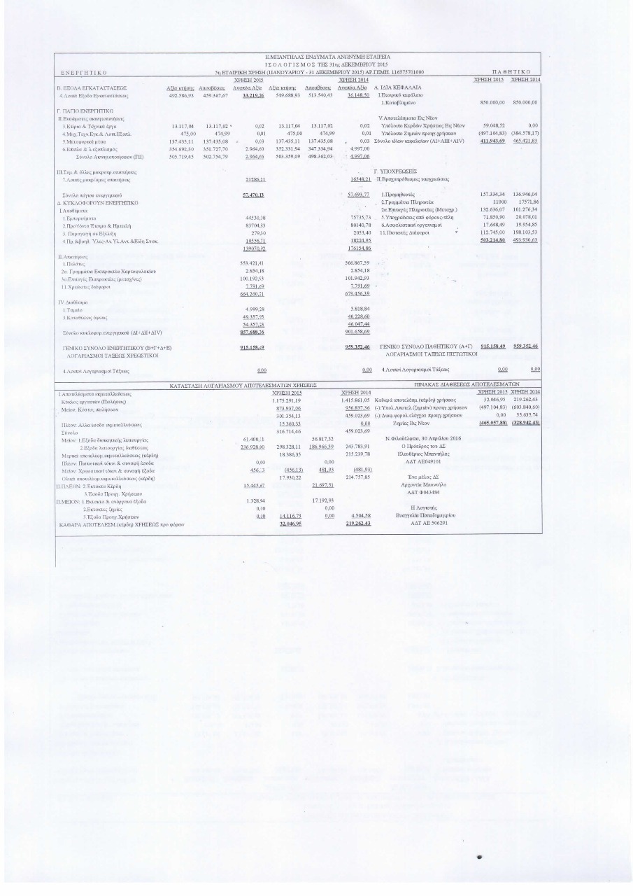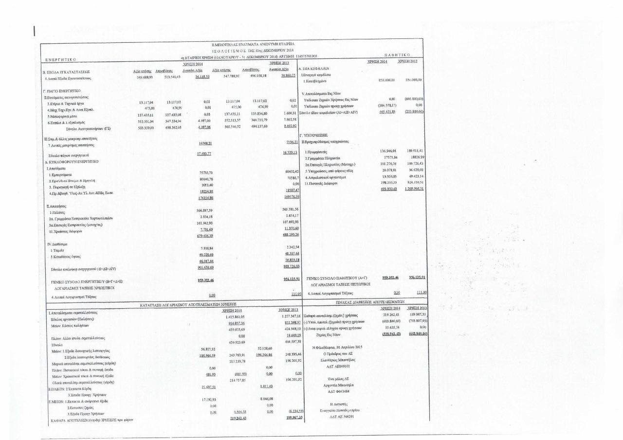 ΠΡΟΣΑΡΤΗΜΑ ΙΣΟΛΟΓΙΣΜΟΥ ΤΗΣ 31/12/2014